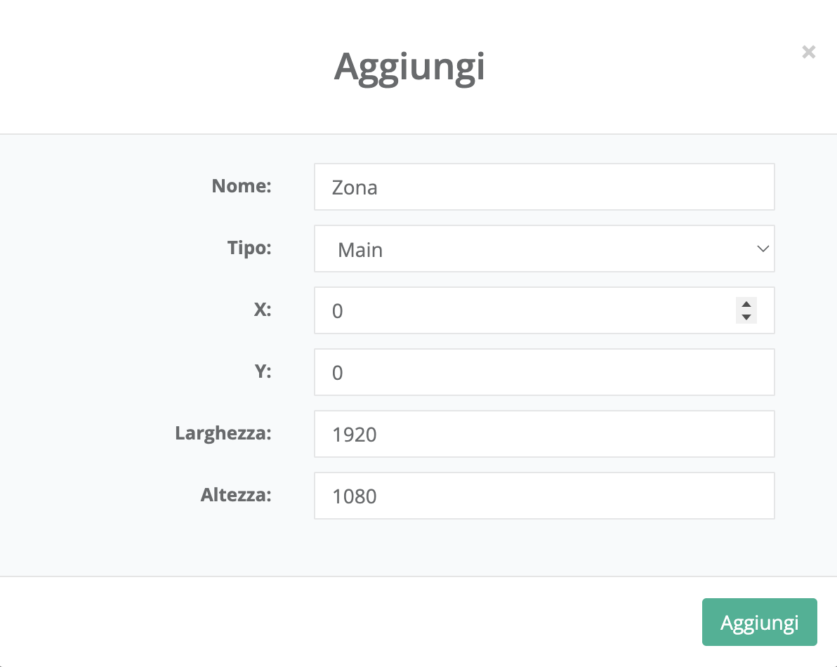 - Coordinate X e Y (posizione della zona sullo schermo)